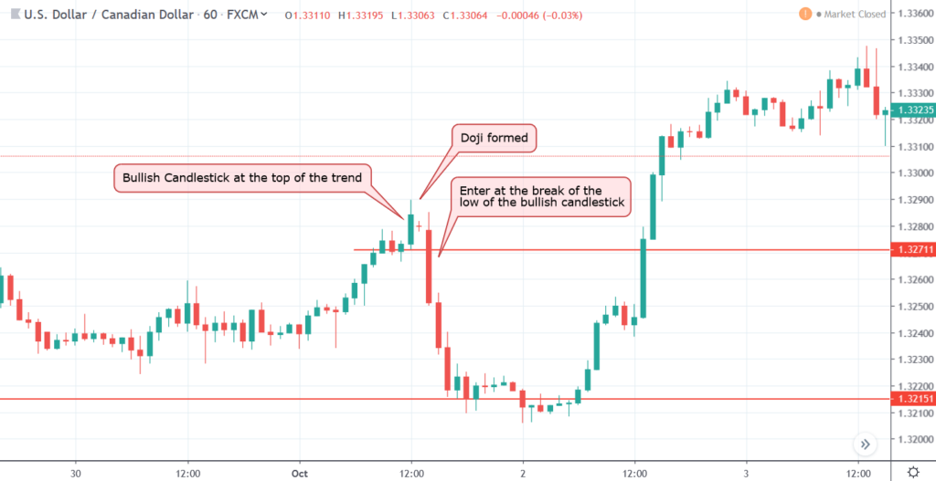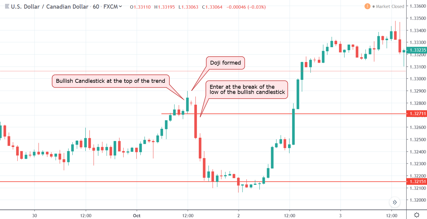 Candlestick pattern-based strategies are easy to trade as most of the time you just need to wait for the pattern to form and place a buy or sell stop entry order above or below the candlesticks. This way, you enter the market right when the trade confirmation happens.