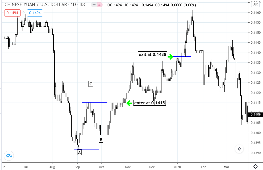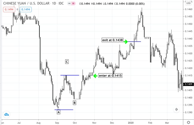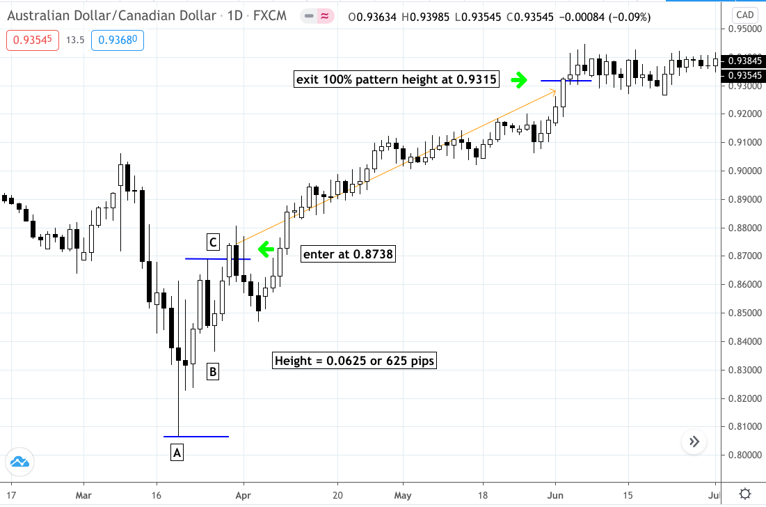The last part is pretty easy. Allow your trade to complete itself at a profit or loss. Hopefully, you’re allocated the right percentage of risk to your position, not more or less. If your target is 100% or more the height of the pattern, then you can consider either raising your stop loss to [B], or close to a breakeven point to limit your losses. At this point, you’re on your own, but at least you have several options for managing your trade.