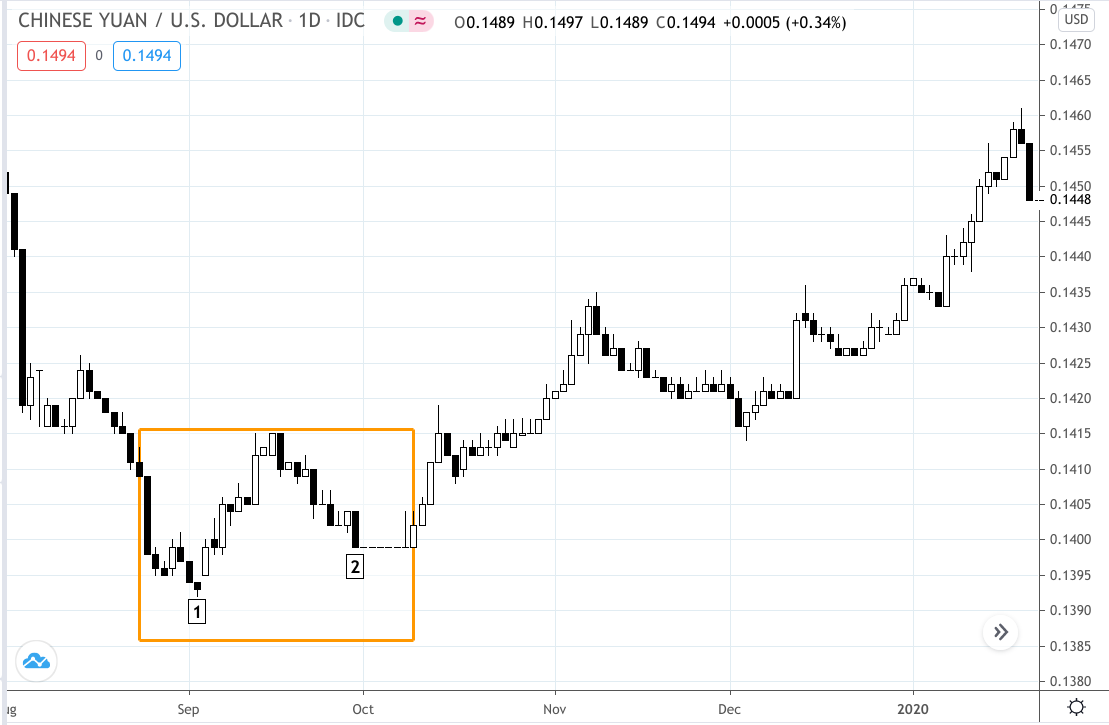 CNYUSD Daily August 2019 to January 2020