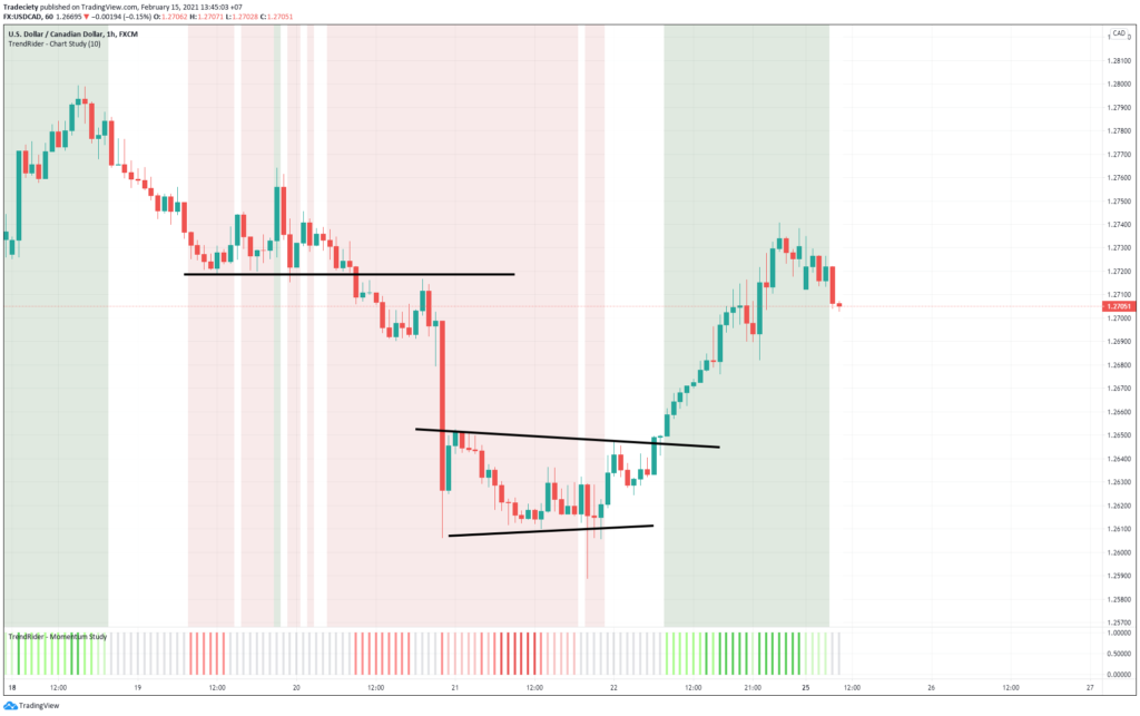 We on Tradeciety created the Trend Rider indicator and as the name suggests it is an indicator best used to ride trends. In the example below, I highlighted two breakout trades.