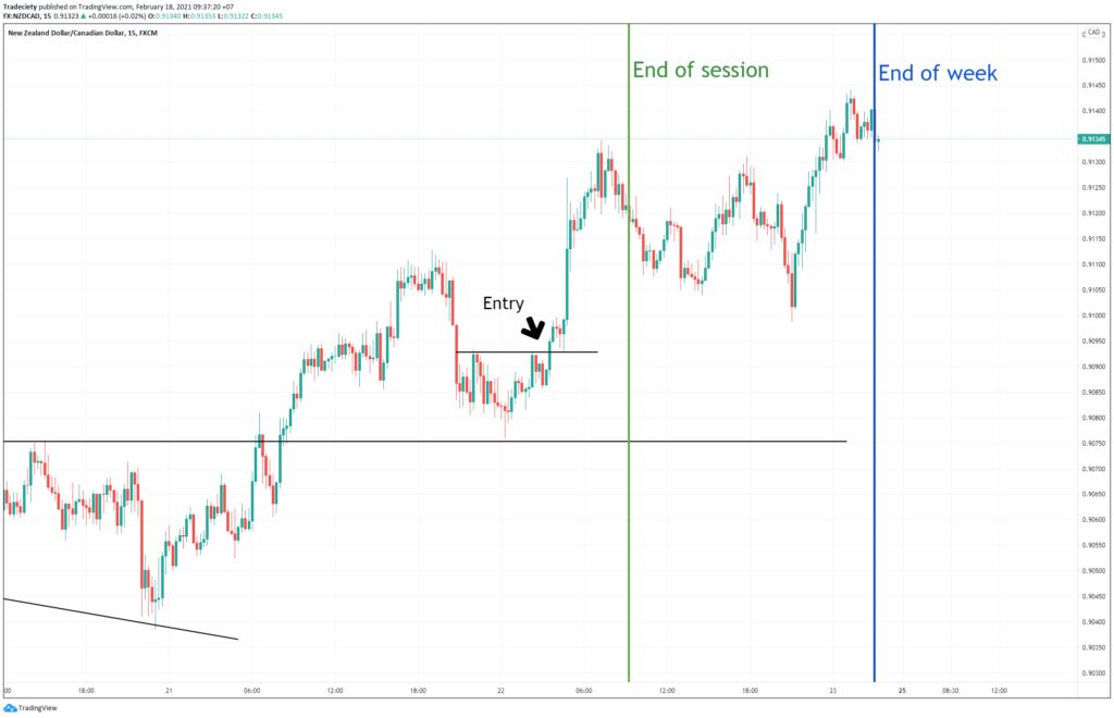 Swing traders often utilize an end od week target strategy to exit all trades on Friday night to avoid the risks that come from holding trades over the weekend and being exposed to gap risk.