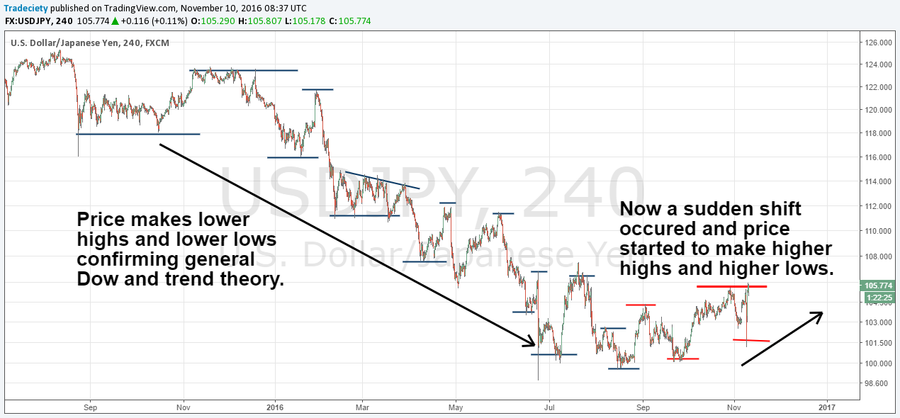 Whenever I look at a market, I start by analyzing how swing highs and swing lows manifest on the chart. Are we in a rally and is price making higher highs and higher lows? Are we in a bear market and is price showing lower lows and lower highs? Or is the market in a transitioning period where price is going from one phase to the next?