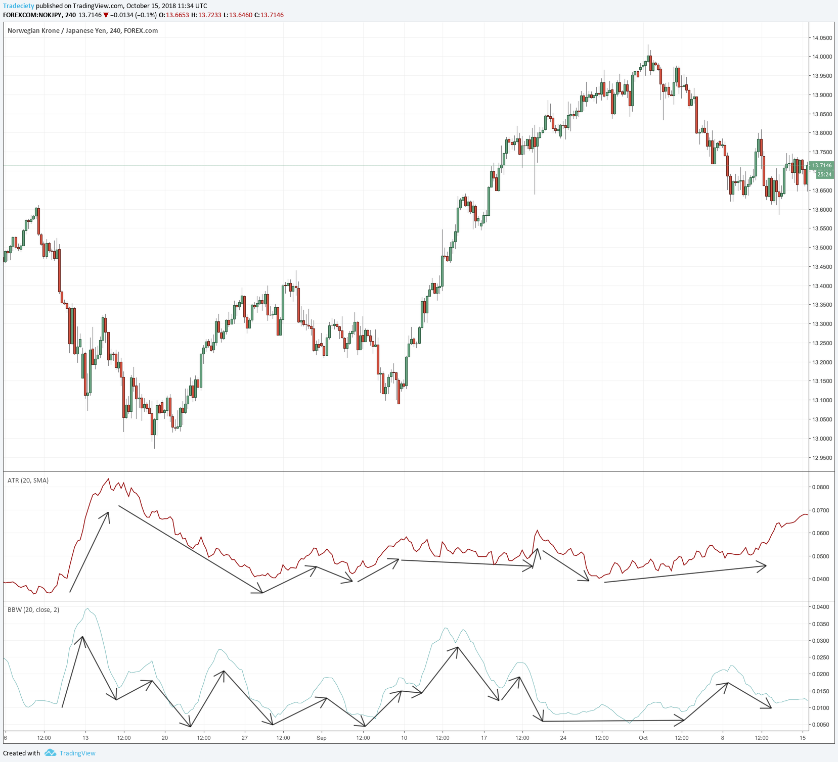 Finally, we can summarize that neither indicator is superior over the other. Personally, I prefer the Bollinger Bands® because of the statistical component of the standard deviation. Without getting too much into statistics at this point, the standard deviation is used to calculate confidence intervals. This means that when the Bollinger Bands® are set to 2 standard deviations, only 5% of all price action should be outside of the bands. A breach, thus, signals a statistically significant occurrence. The ATR and the Keltner Channel is behaving similarly, though, and will often provide similar signals. It comes down to a trader’s preferences. Consistency is the most important aspect here.