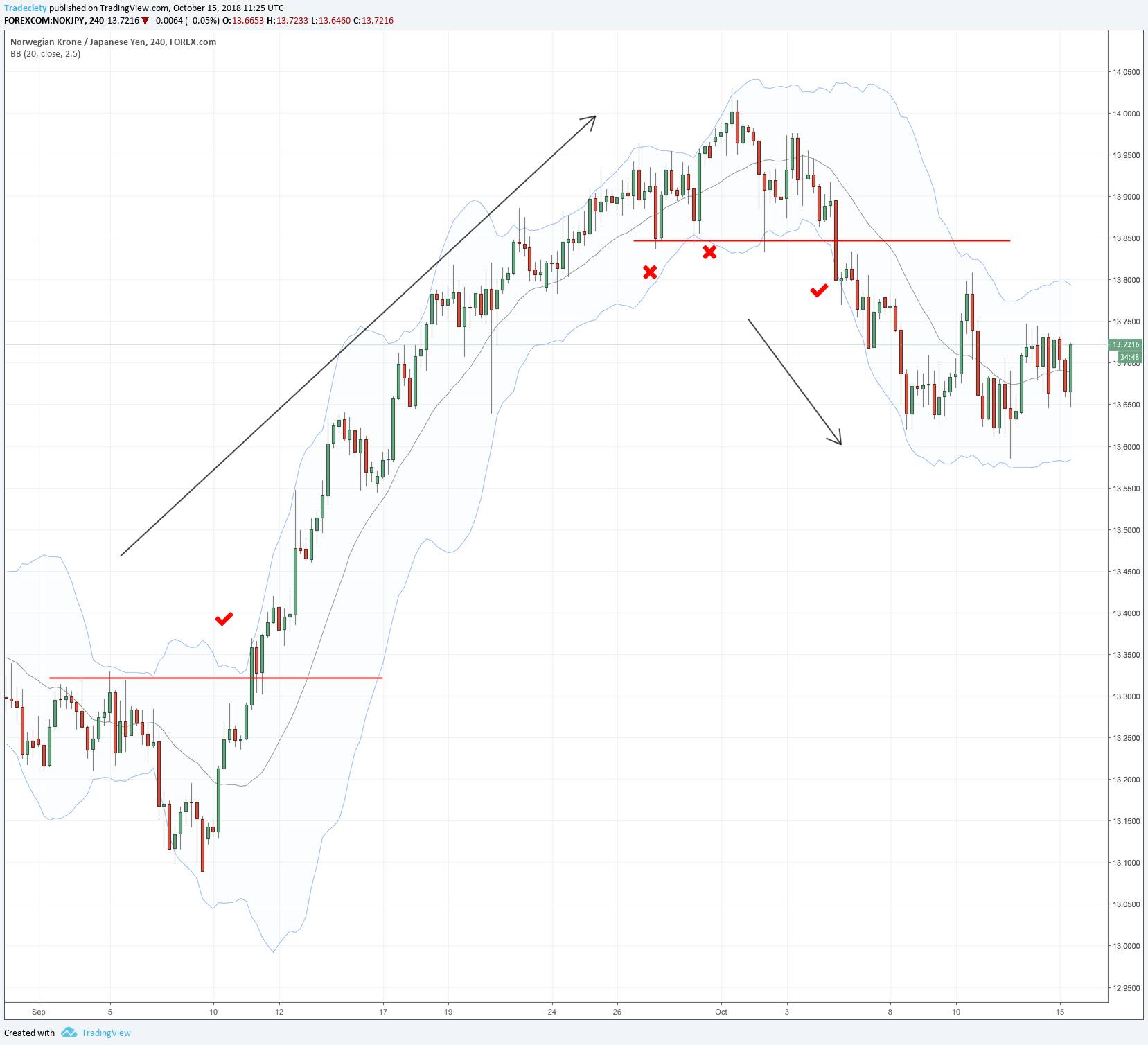 I wrote an in-depth guide about the Bollinger Bands® here: Bollinger Bands® trading 101