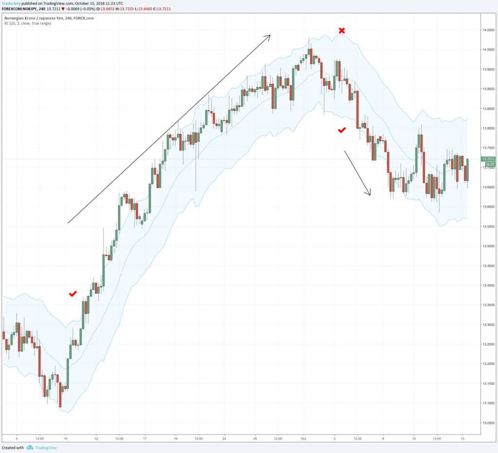 Although many traders believe that there is no difference between the Bollinger Bands® and the Keltner Channel, there is! Although they look similar, it is very important to know about the differences. Here is what the Keltner Channel does: