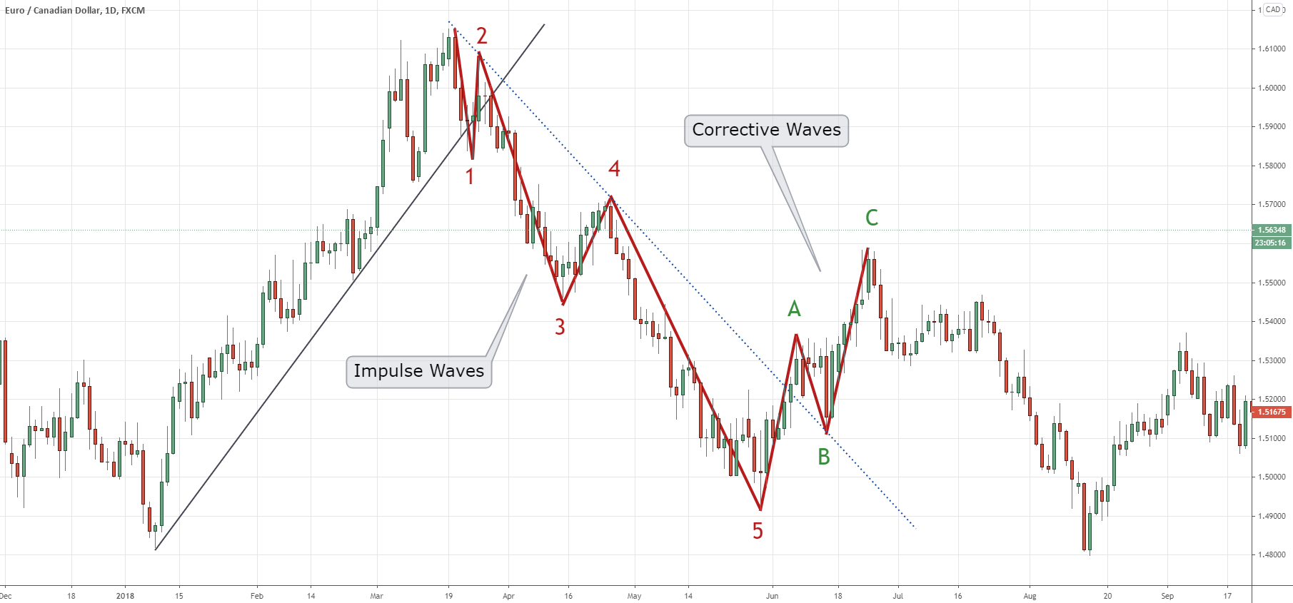 Figure 4: Example of an Elliott Wave Theory Plotted on the EUR/CAD Daily Candlestick Chart