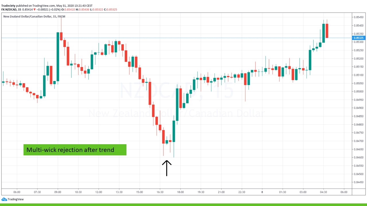 Multi-wick rejections are great candlestick signals because they give traders a lot of time to notice the chart.