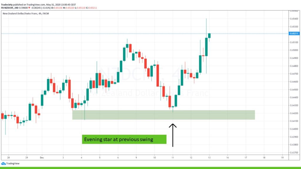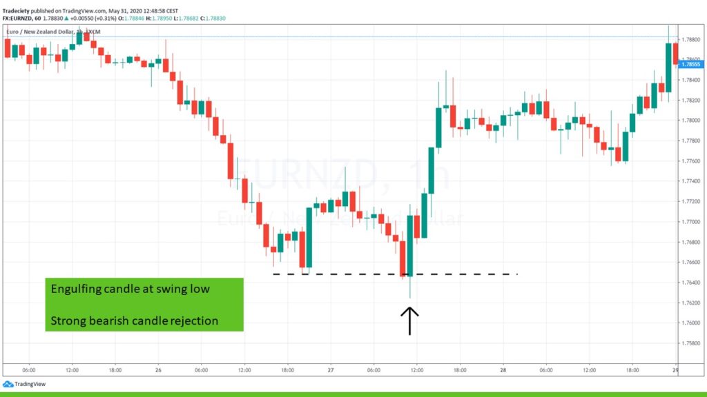 In the scenario below, we see a strong bullish engulfing candle at a previous swing low.
