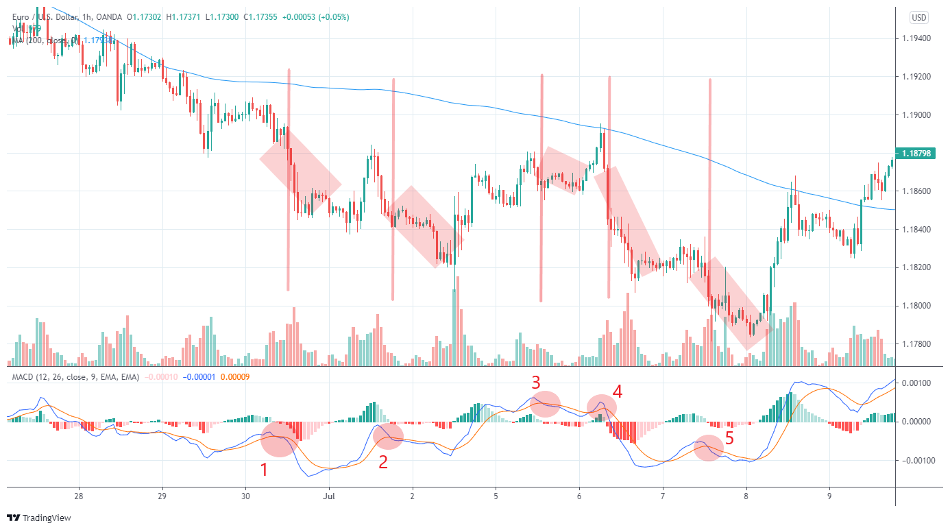 In the example above, we get five bearish signals with our strategy in a relatively short period. And, once again, not all situations would have provided a profitable outcome. We can’t stress the importance of risk management and cutting losses enough in this context. Furthermore, a new trend trading strategy should never be used in a live market environment and always tested on demo first!