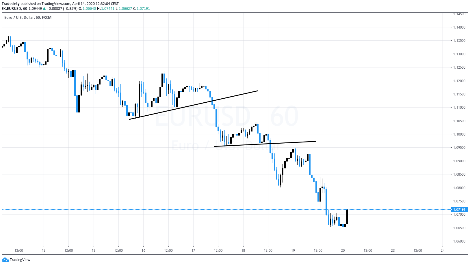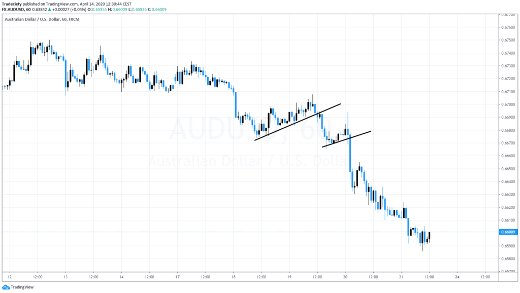 And then you can see once that flag breaks, the downtrend accelerates. Here we have concept of deceleration again. The bulls are not really taking over very small up trending phase or very small consolidation already shows us again that there’s not a lot of bullish pressure and then here, uh, once the flag breaks the momentum really accelerates to the downside.