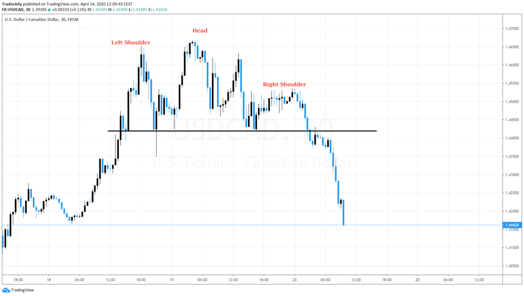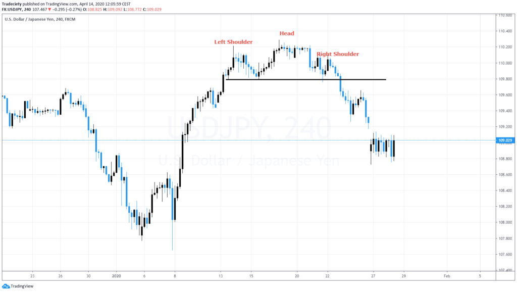 Not as strong as what we’ve seen in the other picture or the other examples, but regardless or nevertheless, a lower high, a significantly lower high, which tells us that now the bears are coming into the market, the bulls are not able to push the price higher and you can see we have then to final break or below this support area and then the downtrend was initiated. So the head and shoulder is usually a connector pattern. It connects two trending phases and when you look for head and shoulder as a reversal pattern, it connects, connects two opposing trending phases. So it connects this uptrend to the downtrend.