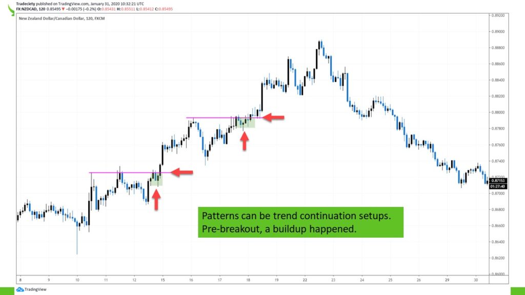 And also, this is true for trend continuation. So in an overall downtrend you have your initial trending leg, then you have your um, consolidation where the market is just going sideways, you have the breakout out of the pattern and then this leads to a trend continuation. So breakouts are really one of the most important concepts and breakouts are at the core of many trading strategies. So whether you trade trend continuation, whether you trade reversals, whether you trade any other trading style, very, very often a breakout approach is at the core of this trading. And we will see and we will go through many different examples and scenarios in this video. And if you do like those types of videos, please make sure to subscribe to my channel, make sure to leave a thumbs up and also let me know in the comments below what you find most interesting. When it comes to patterns or when it comes to breakout trading.