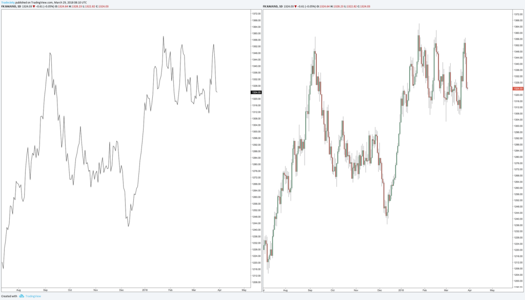 Candlestick charts are further developed line charts – which the image below shows – that serve to compensate for the disadvantage of less information. Candlestick charts have their origin in 17thcentury Japan. Today, candlestick charts are the preferred tool of analysis for traders and most investors since they provide all the required information at a glance. In this article, you will learn everything you need to master candlesticks patterns like a true professional.